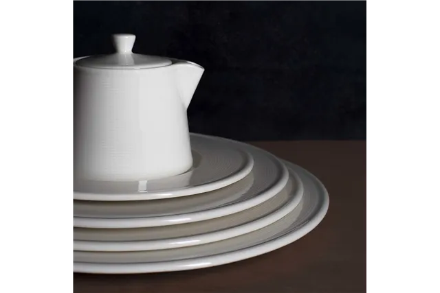 Kolekcja Line, o kremowo-białym kolorze, łączy proste wzornictwo z delikatnie karbowanym rantem. Mnogość produktów oraz wykonanie z porcelany najwyższej próby sprawia, że jest to idealny wybór na atrakcyjne bankiety.