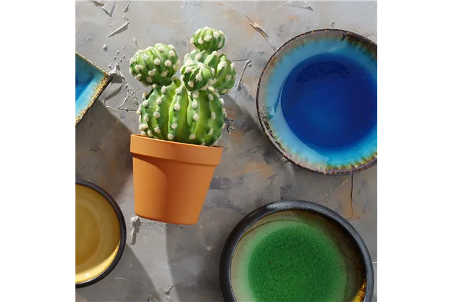 Dominujący zielenią Beryl, błękitem Lazur oraz słoneczną pomarańczą Topaz mają niejednolitą, częściowo chropowatą powierzchnię i idealne pod perfekcyjny serwis wykończenie. Wzornictwo kolekcji Topaz nawiązuje do japońskiego stylu. Ze względu na ręczne wykończenie i glazurowanie możliwe są niewielkie różnice w kolorze i fakturze pomiędzy każdym produktem, co pozwala nam docenić ich unikatowy charakter.