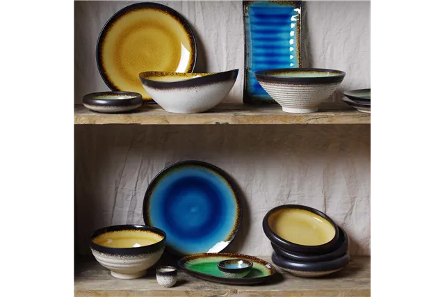 Dominujący zielenią Beryl, błękitem Lazur oraz słoneczną pomarańczą Topaz mają niejednolitą, częściowo chropowatą powierzchnię i idealne pod perfekcyjny serwis wykończenie. Wzornictwo kolekcji Topaz nawiązuje do japońskiego stylu. Ze względu na ręczne wykończenie i glazurowanie możliwe są niewielkie różnice w kolorze i fakturze pomiędzy każdym produktem, co pozwala nam docenić ich unikatowy charakter.
