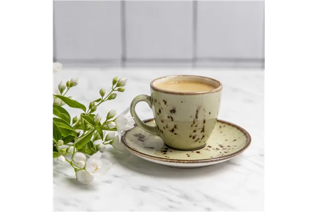 Bogata kolekcja recznie zdobionej porcelany w pięciu soczystych kolorach. Dopasuj elementy kremowe, pomarańczowe, niebieskie, szare i oliwkowe, aby uzyskac unikalny i zaskakujący wygląd stołu, a jedzenie będzie prezentować się tak samo dobrze, jak smakuje. Zastawa wytrzymała i odporna, zaprojektowana tak, aby wytrzymac trudy użytkowania w profesjonalnej kuchni. Materiał: porcelana typu Vitrified Temperatura wypalania: 1050° i 1400°C Odpornosc na temperature: 180°C