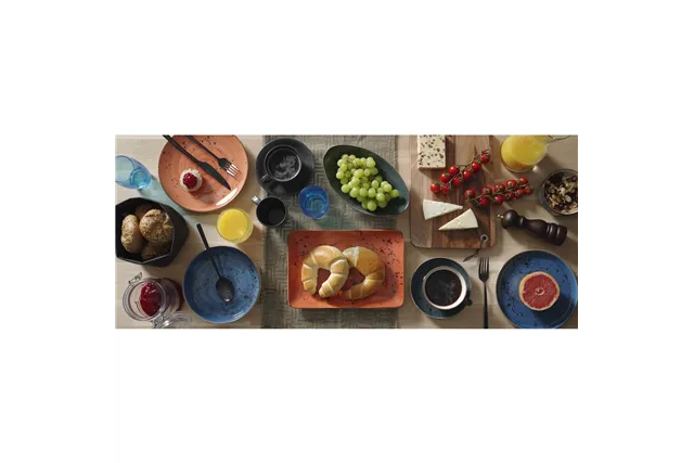 Bogata kolekcja ręcznie zdobionej porcelany w czterech soczystych kolorach. Dopasuj elementy pomarańczowe, niebieskie, szare i oliwkowe, aby uzyskać unikalny i zaskakujący wygląd stołu, a jedzenie będzie prezentować się tak samo dobrze, jak smakuje. Zastawa wytrzymała i odporna, zaprojektowana tak, aby wytrzymać trudy użycia w profesjonalnej kuchni.